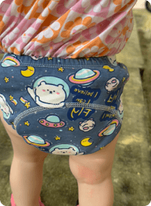 Strefa chłonna została zaprojektowana tam, gdzie jest najbardziej potrzebna, a neutralny krój i wzory sprawiają, że każde dziecko może poczuć się jak „duży maluch” 👶➡️🧒